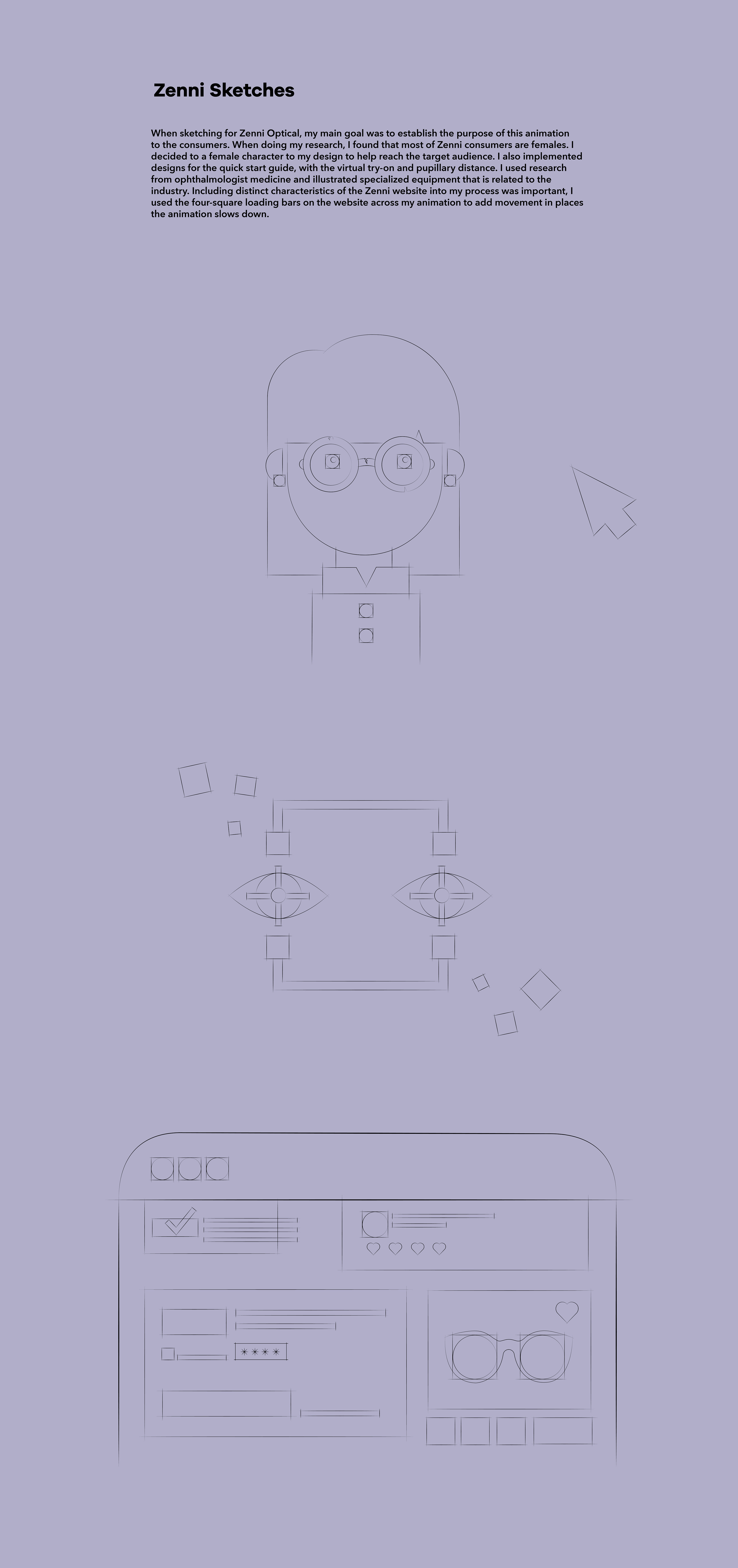 Zenni Optical is a retail eyeglass company located in San Francisco. The company is one of the largest online optical retailers. Their mission is to provide affordable eyewear and offer a wide selection from prescription eyeglasses and sunglasses. My job was to make a thirty-sec explainer animation, informing customers about their quick-start guide so that customers could have a more enjoyable experience on their website.